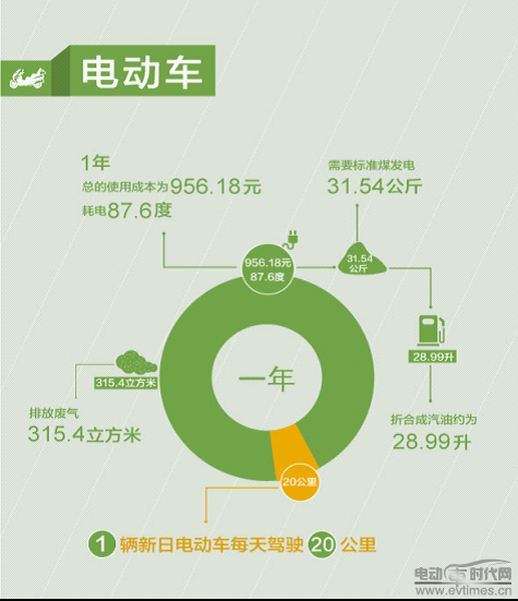 权威数据显示,一辆摩托车1年的能耗量是一辆电动车的6.4倍,而一辆微型汽车1年的能耗量更是高达一辆电动车的12.8倍;从废气排放上来看,一辆摩托车1年燃烧汽油总废气排放量是1辆电动车所耗标准煤排放废气总量的5.8倍,而一辆微型汽车的废气排放量则是电动车的11.6倍。